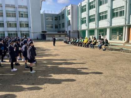8時30分から、運動場で「ぶっくりさん・見守り隊さん ありがとうの会」を開催しました。