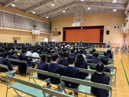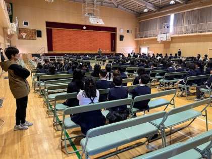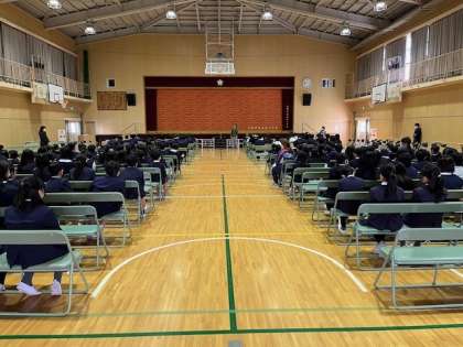 ご覧のように、講堂の中は卒業式前のため椅子が並んでいます。