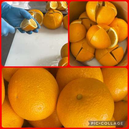 子どもたちが食べやすいように、皮と身の間に切れ目を入れてくださっています。