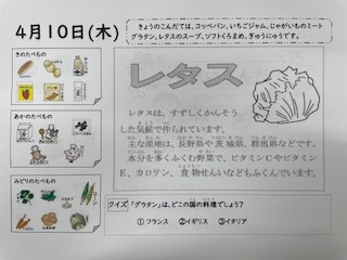 今日はレタスのスープと、じゃがいものミートグラタンでした。