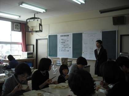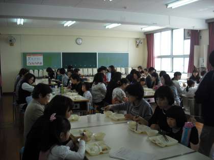 民間委託の給食の更新年となり、給食試食会を行いました。玉出地域、玉出中学校、玉出幼稚園から44名もご参加いただきました。「すまし汁は具が多かった」「ごまかかいためは、細かくきざんであった」「明日入学させていただくので、こういう機会を作っていただき、大変よい機会でした。」というご意見をいただきました。