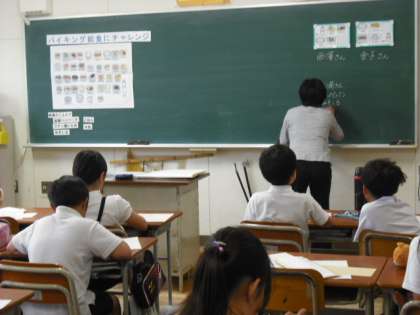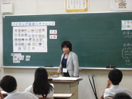 5年生の栄養推進事業は「バイキング給食をつくろう」でした。自分たちでメニューを考えるのですが、主食・副食・副菜と何を食べたらよいか、意識をしました。これからの食生活に生かしていってほしいものです。