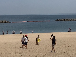 海に入ったり、ビーチボールで遊んだり、子供たちは元気いっぱいです。