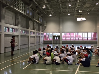 静かを作って真剣に話を聞いています。楽しい2日目になるように、みんなでつくっていくことを確認しました。