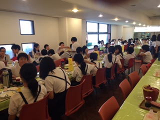最後のご飯です。カレーライスを美味しくいただいています。おかわりする子供もいて、食欲まんまんです。