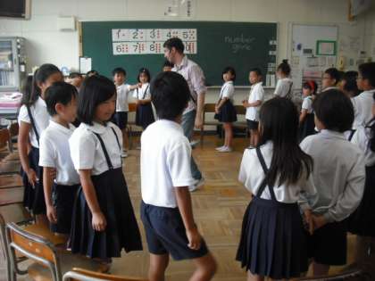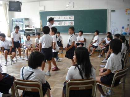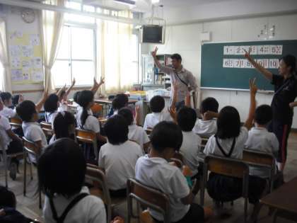 7月11日、いつもは5・6年生に外国語の授業をしてくださるキース先生が3・4年生に英語の授業をしてくださいました。ニコニコ顔の子どもたちです。楽しそうに英語に親しむことができました。
