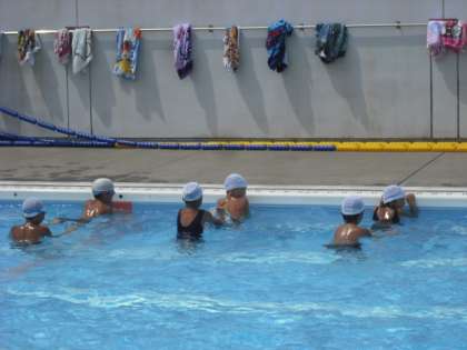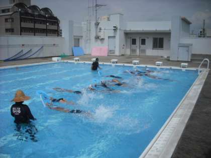 7月25日、教頭先生、山内先生、米田先生、梅垣先生が2チームに分かれて、平泳ぎとバタフライを教えてくださいました。かっこよく泳ぐ姿が見られました。