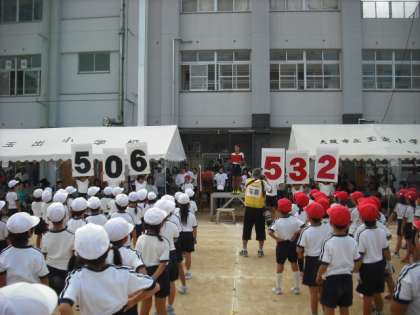 今年度の運動会は紅組が勝ちました。けれども、子どもたちは本当によく頑張りました。開会式で「せいいっぱい 最後まで がんばる」このことは、どの子どももできたと思います。ここで身につけた力を次に生かしていきましょう。感想に、「どの子も輝いていましたね」という言葉があり、教職員もうれしく思いました。