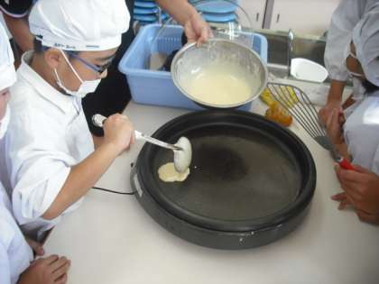 辰巳さんを迎え、5年生が玉出の伝統野菜、こつなんきんを使って調理実習をしました。作ったのは、パンケーキとスープです。おいしくいただくことができました。お手伝いいただいた皆様、ありがとうございました。