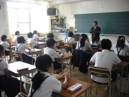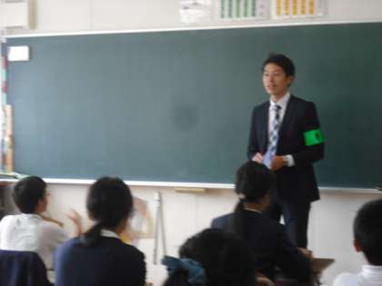 西成警察署から、お巡りさんが来て、6年生の子どもたちに、自分を守ることについてお話をしてくださいました。たとえば、落書きであっても大人であれば犯罪になることや、身を守るために「いかのおすし」の話です。だれであっても加害者にも被害者にもなることがあるという話は、子どもたちの心に残っていました。だから、周りに流されることなく自分のかんがえをきちんと持つことが大切です。静かをつくって、「うめのかさ」で話を聞くことのできる6年生でした。