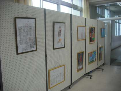 会議室にある、アートギャラリーで「玉出のお祭りの絵」を飾っています。商店街から、参加賞や優秀賞をいただきました。ありがとうございました。玉出の夏のお祭りを懐かしく思い出します。