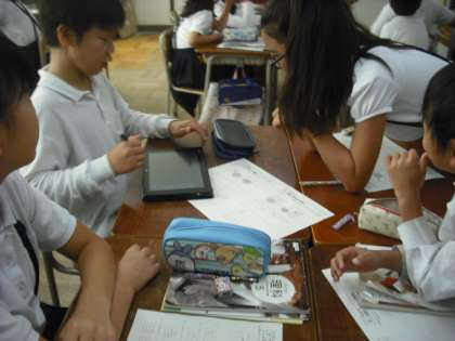 各学校にタブレットが40台入りました。5年生では、それを使って、学習を進めています。使いこなす子どもたちです。