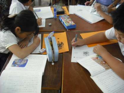 少人数で3分割になって学習を進めています。クラスの人数が少ないので、子どもたちの集中も高まり、発表もたくさんすることができます。また、グループになって学び合う場面もありました。