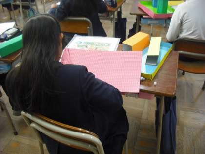 ビー玉ころがしを作っています。「○○の国をつくろう」というテーマで頑張っています。さあ、どんな国ができるのでしょうか。楽しみです。一人一人が工夫をしながら、考えて創作活動に取り組んでいました。
