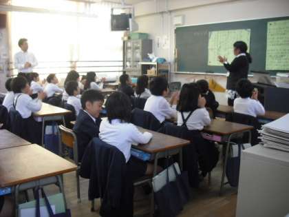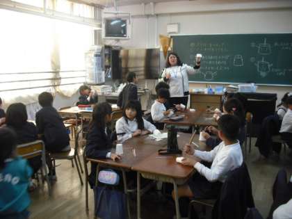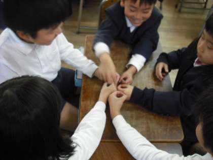 1組は図工「動くしかけ」、2組は音楽「わらべうたに親しもう」