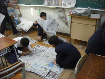 1アールの広さってどれぐらいか、ご存知ですか?4年生の算数で新聞を使ってみんなで協力して1アールを作っていました。このような学習を通して、量感(どれぐらいの広さかわかる)が育っていくのです。