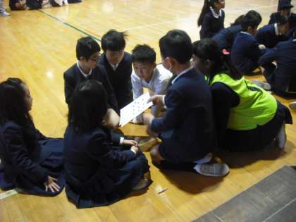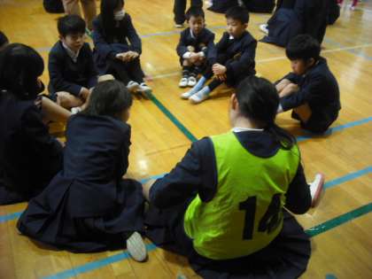 19日の児童集会は、21日の玉小フェスタに向けて、縦割り班でチームを分けたり、回る順番を決めたりしました。