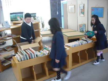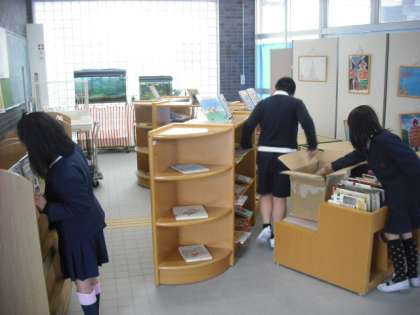廃棄をする本の差し替えをしてくれました。低学年が耐寒なわとびだったので、少ない人数で入れ替えをしました。