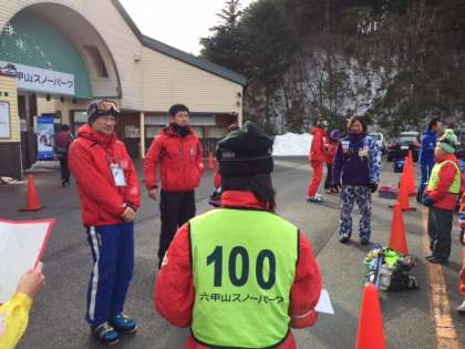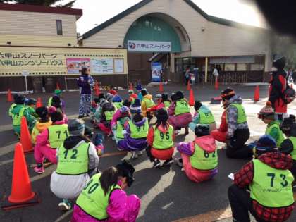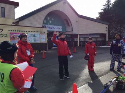 六甲山スキー場に到着しました。開校式です。3人のインストラクターの方が子供達にスキーを、教えてくださいます。子供達にはワクワク、ドキドキしています。
