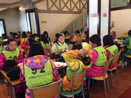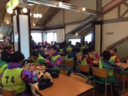 お昼の時間です。カツカレーです。午前中にめいっぱい動いたのでパクパク食べています。