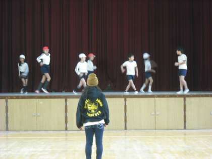 2月4日の土曜授業に向けて、スタジオAXから3人の先生が来てくださり、リハーサルを行いました。舞台に立つチーム、フロアで、舞台の大きさを図り、ダンスをするチームとみんなで真剣に取り組みました。出来上がりもばっちりかな?友だちと共に踊り込みました。当日が楽しみです。