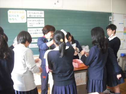 石井先生による石鹸づくりでした。教室はいい匂いでした。