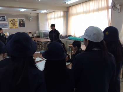 6年生は自分が中学生になった時、どのクラブに入りたいか考えることができました。そして、中学生が一生懸命に案内したり、クラブ活動をしたりしているのを見て、中学校生活を身近に感じることもできました。雪が少し舞う中、ありがとうございました。