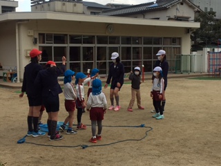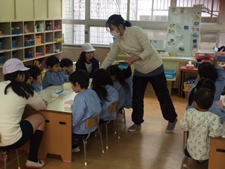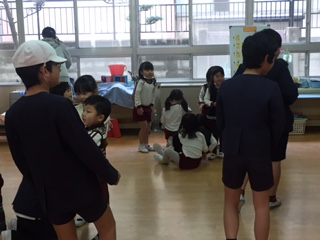 玉出幼稚園では、外遊びや中での保育のお手伝いをしました。