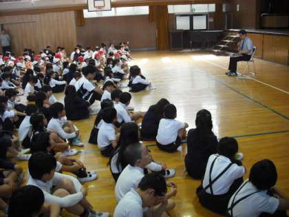 玉出小学校では、校長先生が一冊の本を朗読しました。