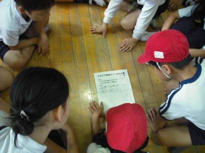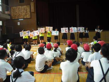 班ごとに、清掃場所を確かめ、めあてを決めて、役割分担をします。