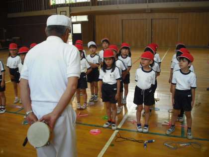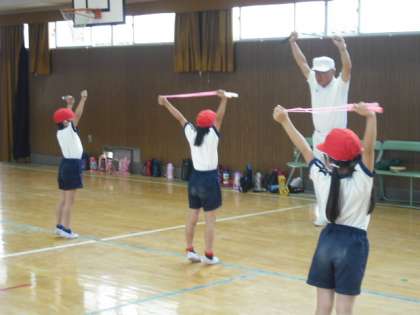 3時間目、1年生が体育館に集まって、なわとび特別授業を受けました。