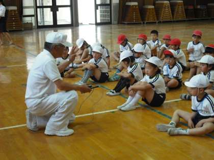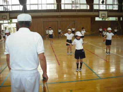初めて二重跳びに成功した児童は、満面の笑みでした。