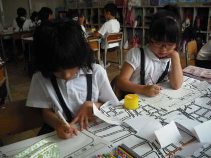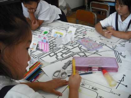 マップの空いているところに、班の友だちのカードを貼って完成です。