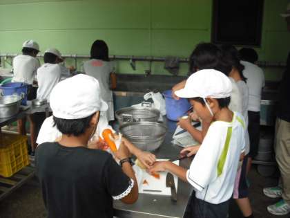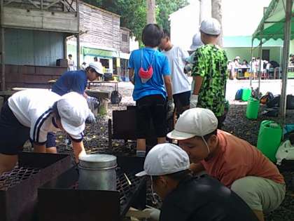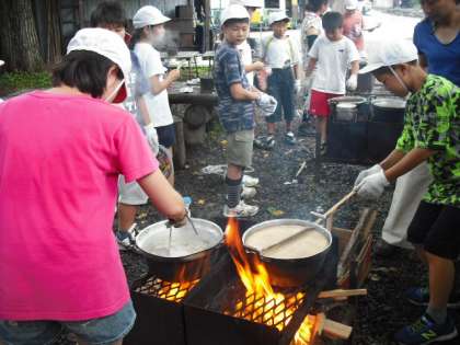 新聞紙の上に割り箸を置き、薪に火をつけます。