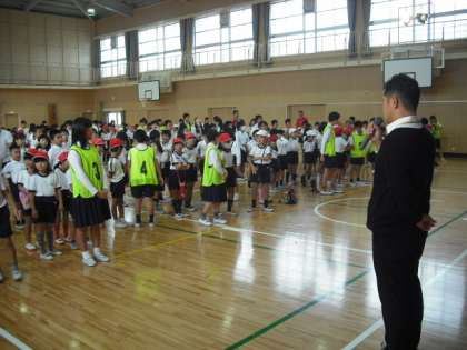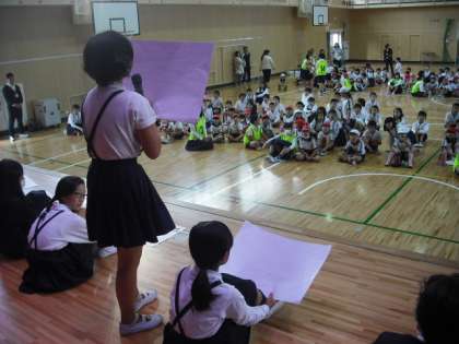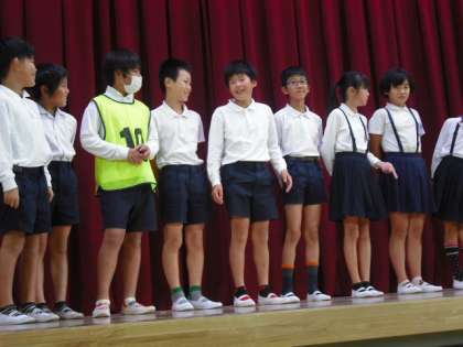 紅組団長と白組団長が、全校児童に向け、あいさつをしました。