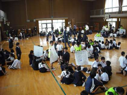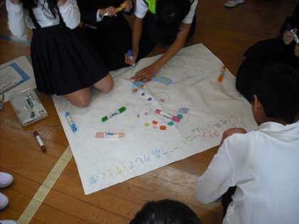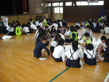 今日は、2回目の全校道徳です。たてわり班集会で班のメンバーで集まりました。自己紹介から始まり、班のめあてを考えました。そして最後に班の旗を作成しました。6年生のリーダーぶりがかっこよかったです。