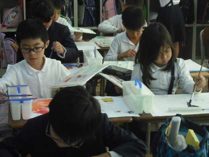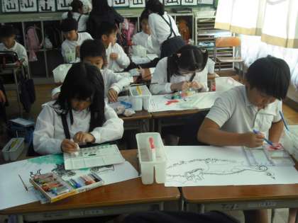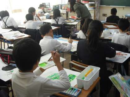 3年生の図画工作「物語の絵をかこう」の授業中。