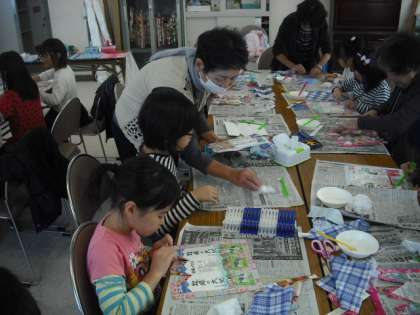 たくさんの参加者と、可愛らしい小物入れを作りました。
