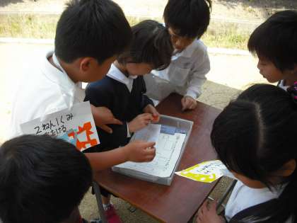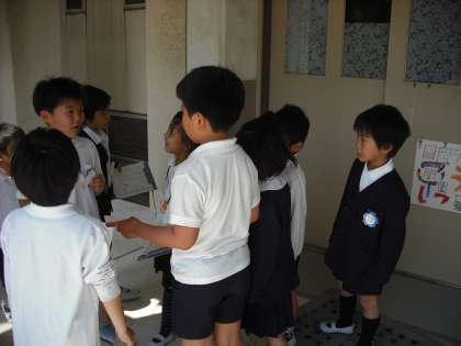 学校探検です。2年生は、1年生をリードして学校を回りました。まずは自己紹介です。1年生から名刺をもらいました。終わってからは、「ありがとう」と言われ、うれしそうでした。さすが玉出小学校の1年先輩です。