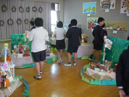 5年生が、玉出幼稚園へ出かけ、作品展の見学をさせてもらいました。