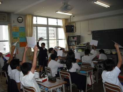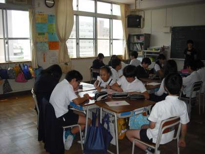 自分の気持ちをハートの形に色や絵で表現しました。初めは「何色かわからへん」と言っていた子どもたちも真剣に塗り出しました。そしてペアで気持ちを伝え合います。少しずつ、何とも言えない温かい空気が流れます。子ども達もここちよかったのでしょう。「気持ちがあったような気がした」「友達がコメントしてくれてうれしかった」と感想を話してくれました。授業でつながるよさ。こんな学習を積み重ねていきます。人とのつながりを感じ、自分の気持ちを表現できる力が高まってくることでしょう。