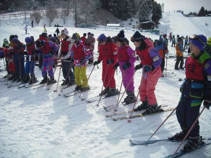 インストラクターの指示をよく聞いて、スキー上達を目指します。