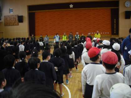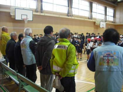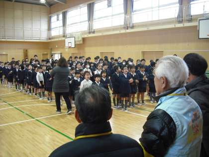 多数の見守り隊さんを講堂にお招きして、全校児童で感謝の気持ちを伝えました。