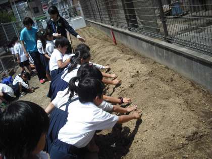 一人一粒の種をもらって学習園に植えました。大切なひまわりの命のもとということでていねいにやさしく植えることができました。芽が出て、花が咲くのが楽しみです。