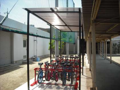 ぴかぴかの一輪車置き場がようやく完成しました。とてもすてきです。ほんとうに暑い中、作っていただいた営繕班のみなさん、ありがとうございました。