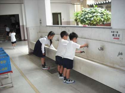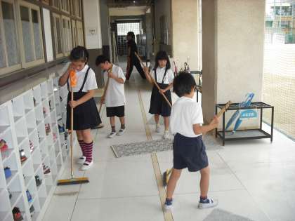 集合場所にきちんと集まり、それぞれのグループで一生懸命お掃除をすることができました。高学年は優しく教えて、低学年は素直に聞く姿が見られました。いつもより学校がきれいになりました。さあ、一週間でぴかぴかにしていきましょう。