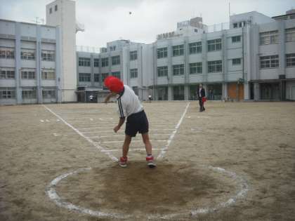 運動場にソフトボール投げ用の測定フィールドが準備されました。