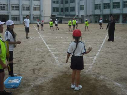 ソフトボール投げ、握力ばど、初めての体験でしたが、1年生も楽しんでスポーツテストを行いました。