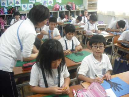 「カッターを使って」と題して、カッターナイフの使い方を学びます。
