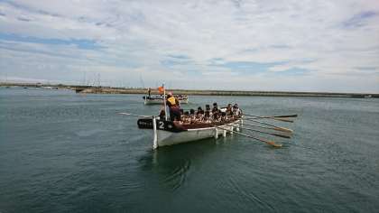 12本の櫂(かい)が担任の掛け声により、上手に操作出来たとき、カッター船は前進します。